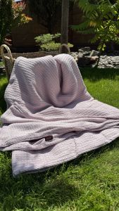 ⁃ Завдяки натуральній тканині плед чудово пропускає повітря та не парить;
